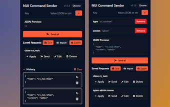NUI Command Sender to darmowa rozszerzenie dla przeglądarki Chrome, które ułatwia deweloperom testowanie integracji NUI w FiveM. Program oferuje prosty interfejs popup, w którym można szybko tworzyć i wysyłać ładunki JSON do aktywnej zakładki. Dzięki funkcji zarządzania zapisanymi zapytaniami, użytkownicy mogą efektywnie testować różne scenariusze bez zbędnych komplikacji.